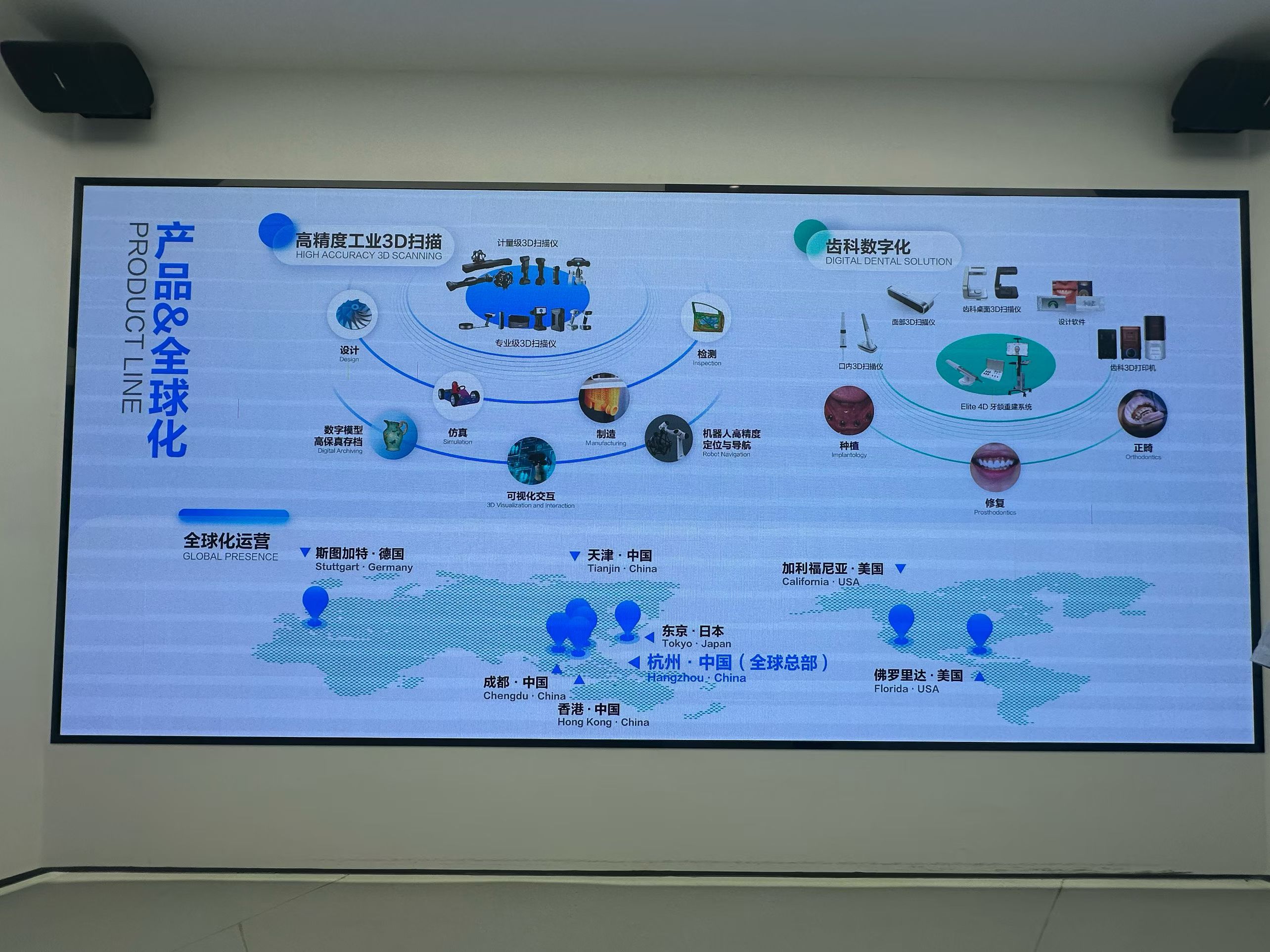 在先临三维领导们的陪同下,我方参观了先临总部办公室,深入了解了先临的技术团队、产品矩阵、市场销售等企业状况,双方围绕三维激光扫描仪的市场现况及发展前景进行了深入的分析与探讨。