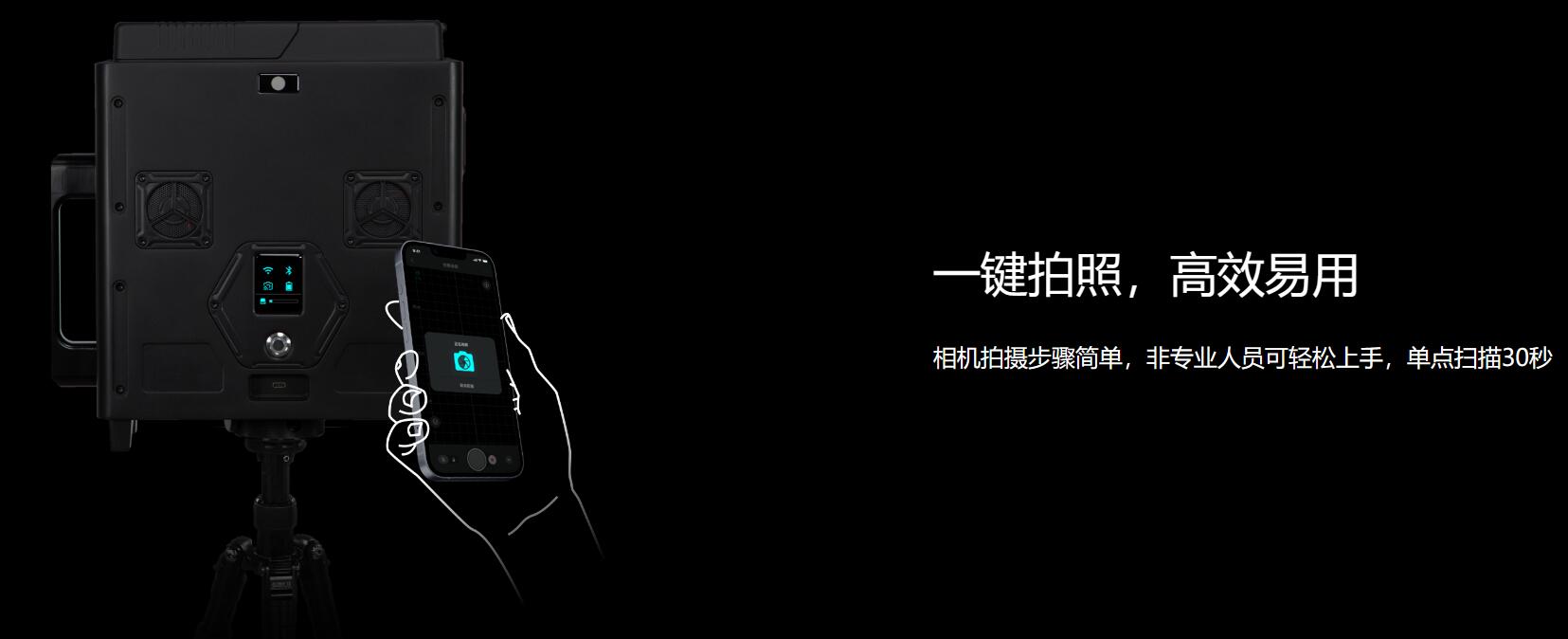 零基础用户无需专业培训即可使用,一键极速扫描,设备自动旋转360°后完成单站采集,即扫即走。