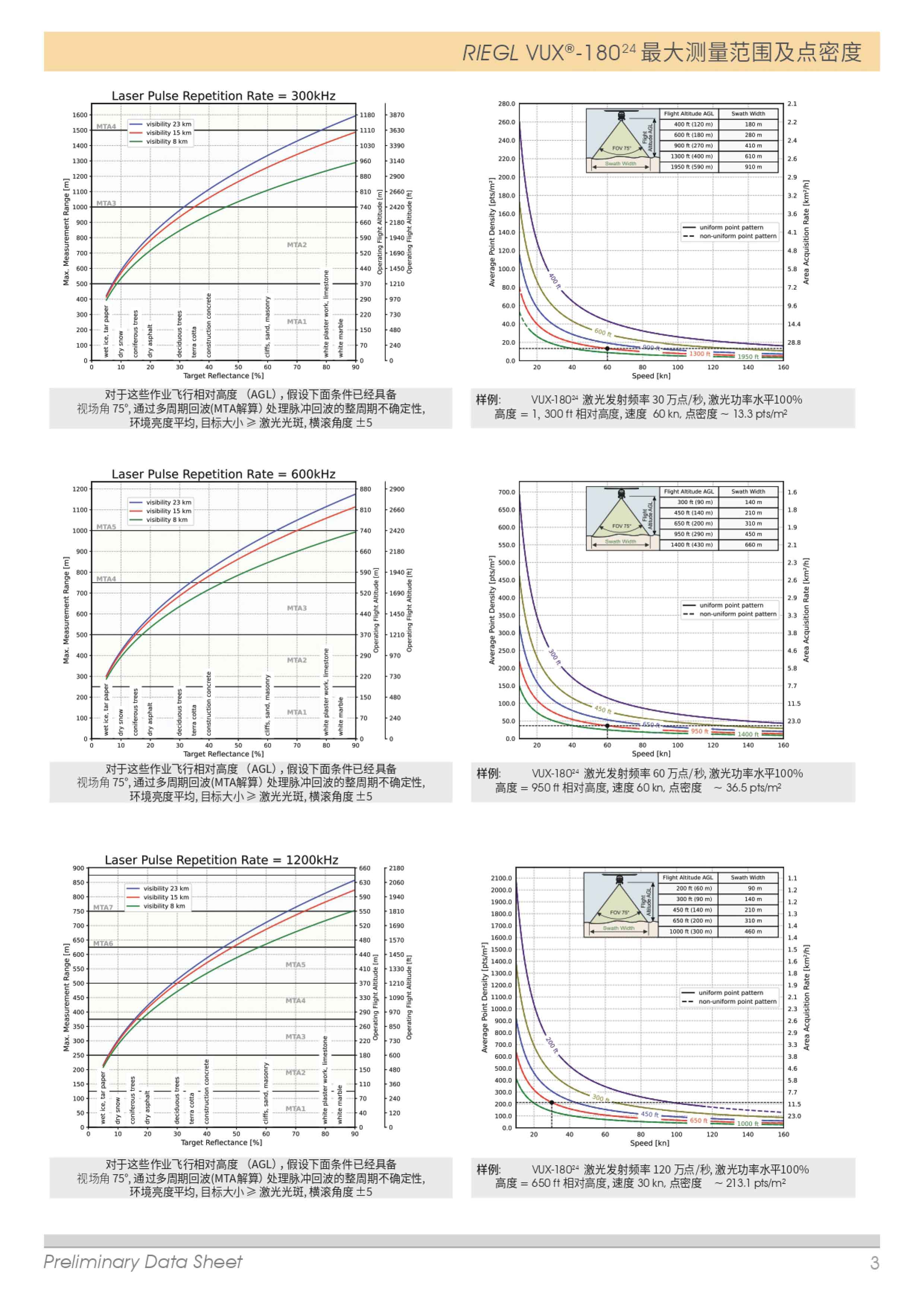 全新的 RIEGL VUX-18024  是一款轻巧,用途广泛的机载激光雷达,可提供75° 的超广视场角和高达 2.4MHz 的超高激光发射频率与高达800线/秒的扫描速度相结合,使 RIEGL VUX-18024 拥有超高的数据采集速率。 更适用于高速测量任务和高点密度的带状测绘。