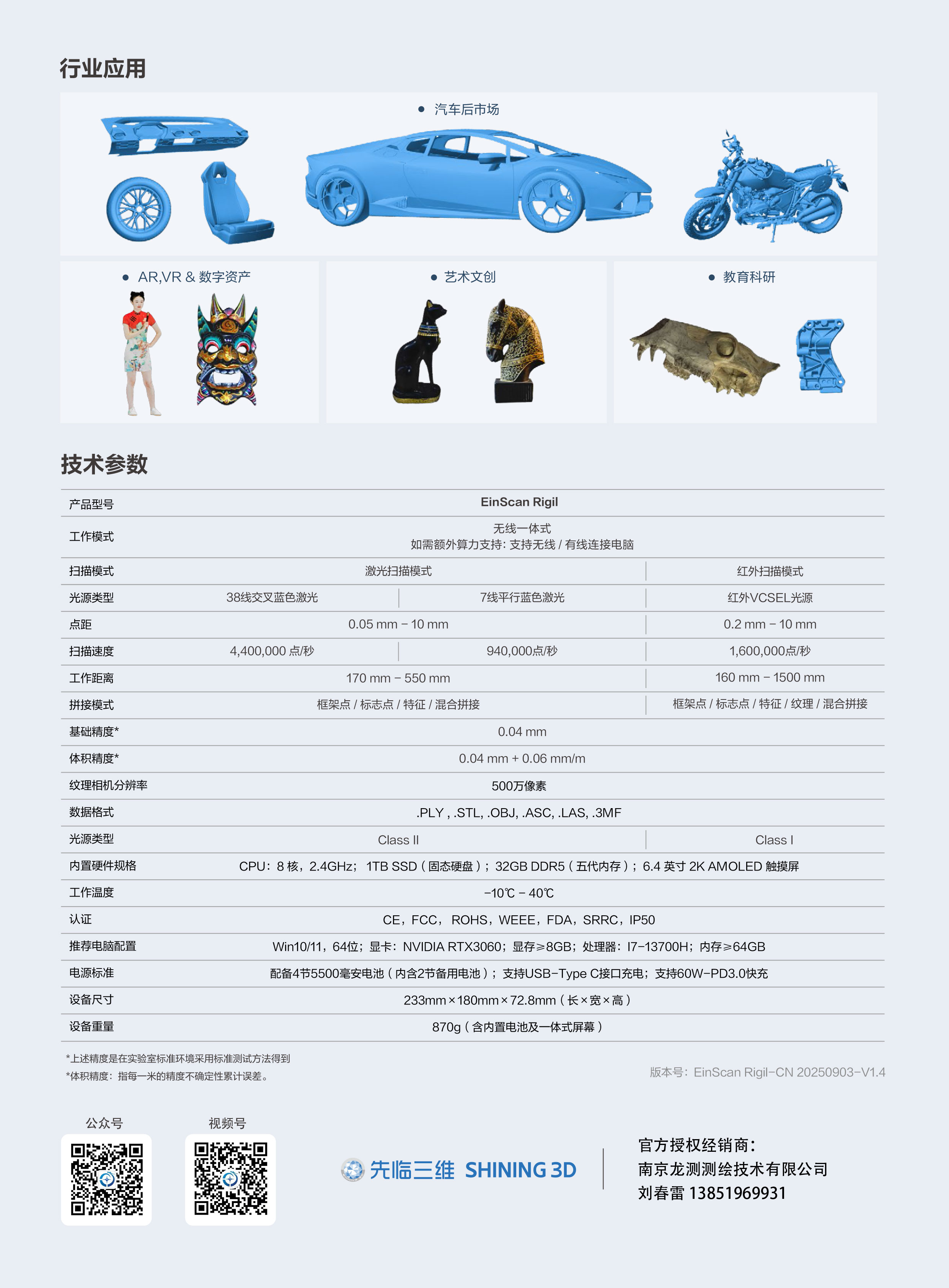 EinScan Rigil 多功能无线一体式手持3D扫描仪